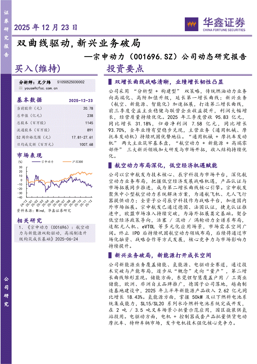 宗申动力:华鑫证券-宗申动力-001696-公司动态研究报告:双曲线驱动,新兴业务破局-251223