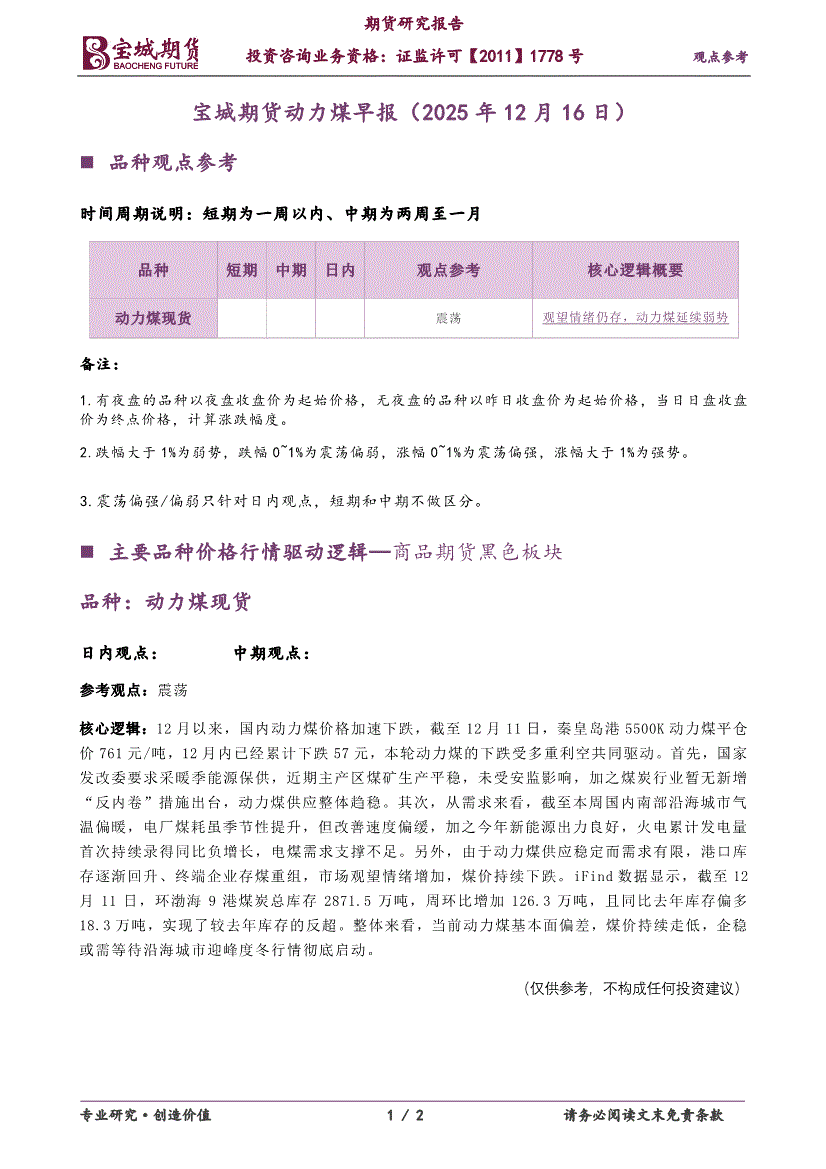 宝城期货-煤焦日报:多空博弈,煤焦低位震荡-251215
