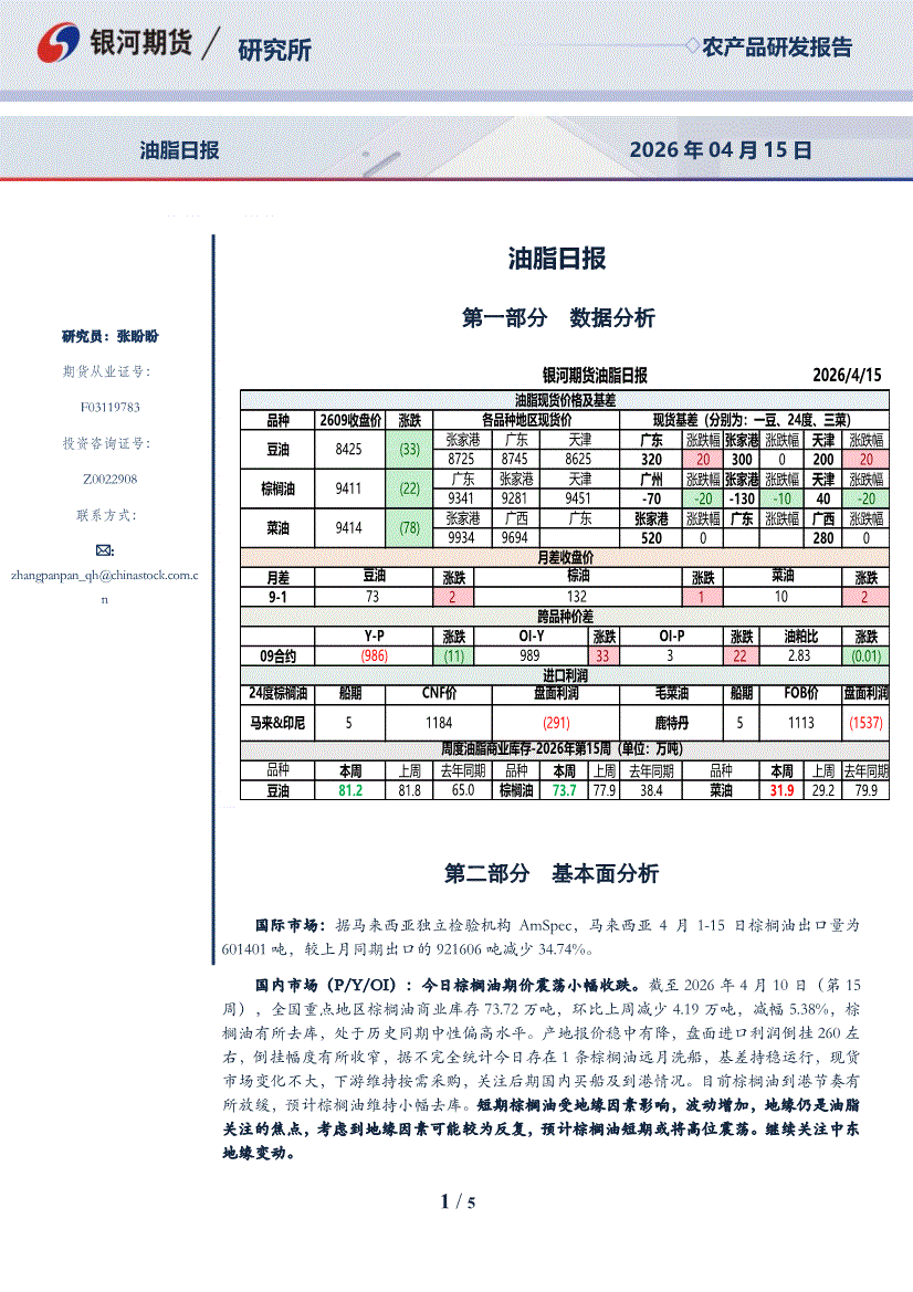 银河期货-油脂日报-260415