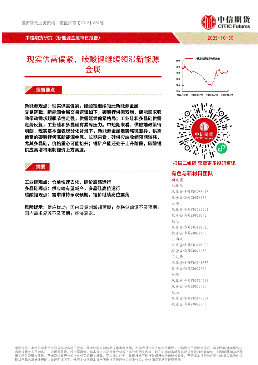 中信期货-新能源金属每日报告:现实供需偏紧,碳酸锂继续领涨新能源金属-251028