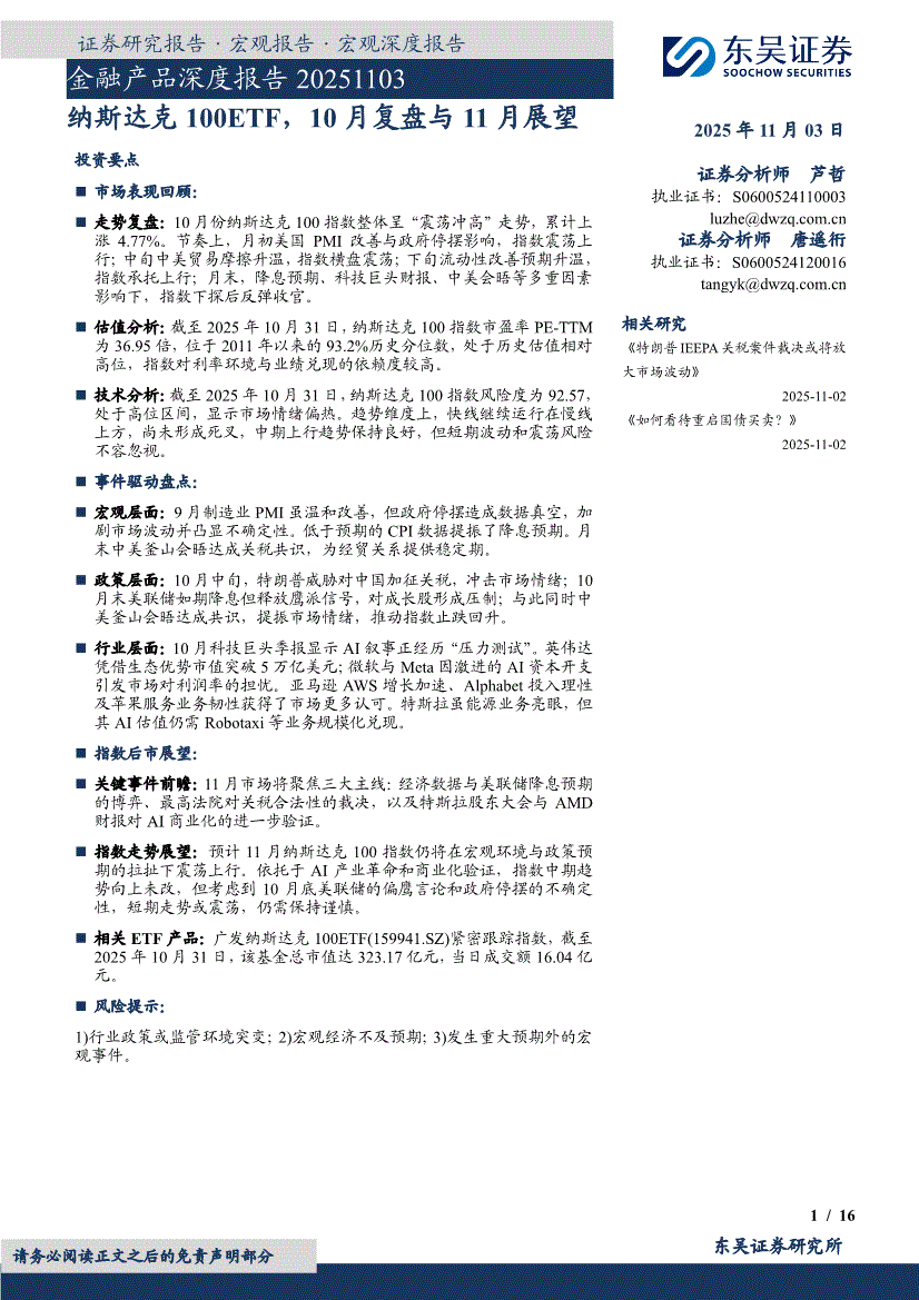 东吴证券-金融产品深度报告:纳斯达克100ETF,10月复盘与11月展望-251103