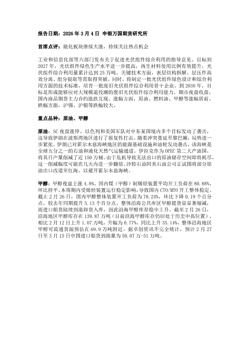 申银万国期货-早间评论-260304