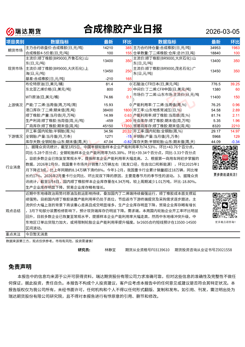 瑞达期货-合成橡胶产业日报-260305