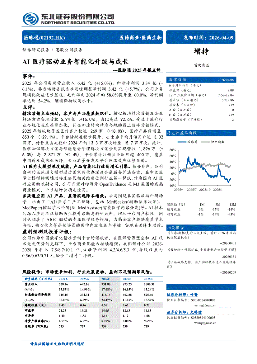 医脉通:东北证券-医脉通-2192.HK-2025年报点评:AI医疗驱动业务智能化升级与成长-260409
