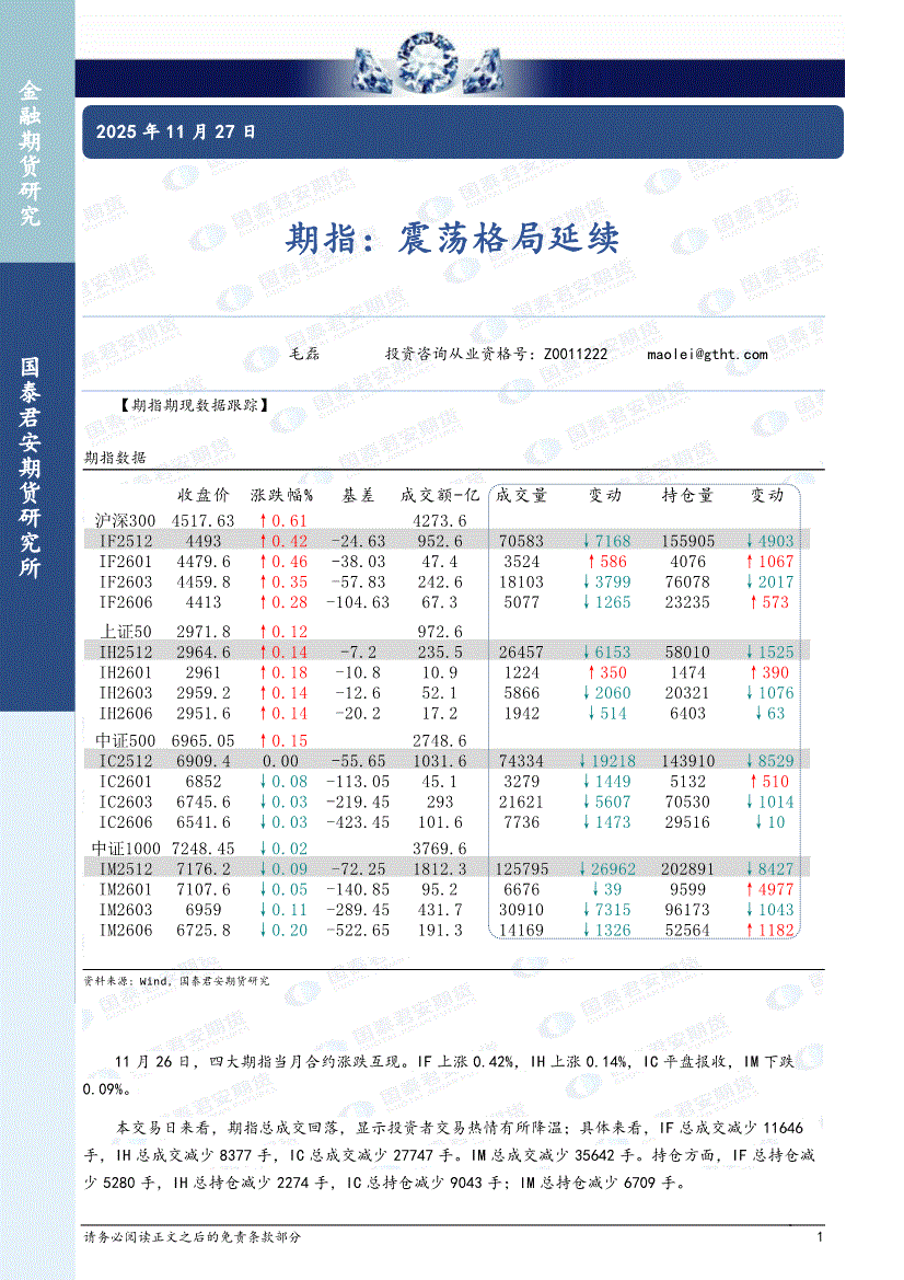 国泰君安期货-期指:震荡格局,下有支撑-251201