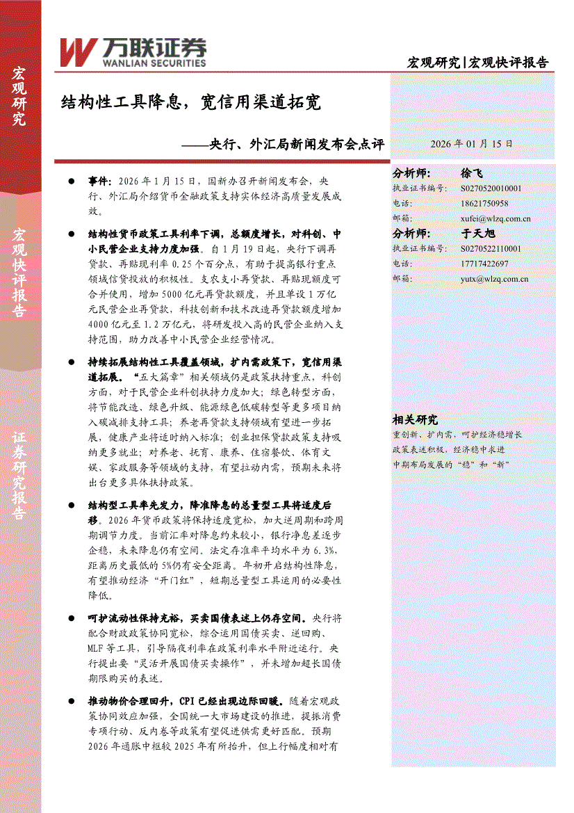 万联证券-央行、外汇局新闻发布会点评:结构性工具降息,宽信用渠道拓宽-260115