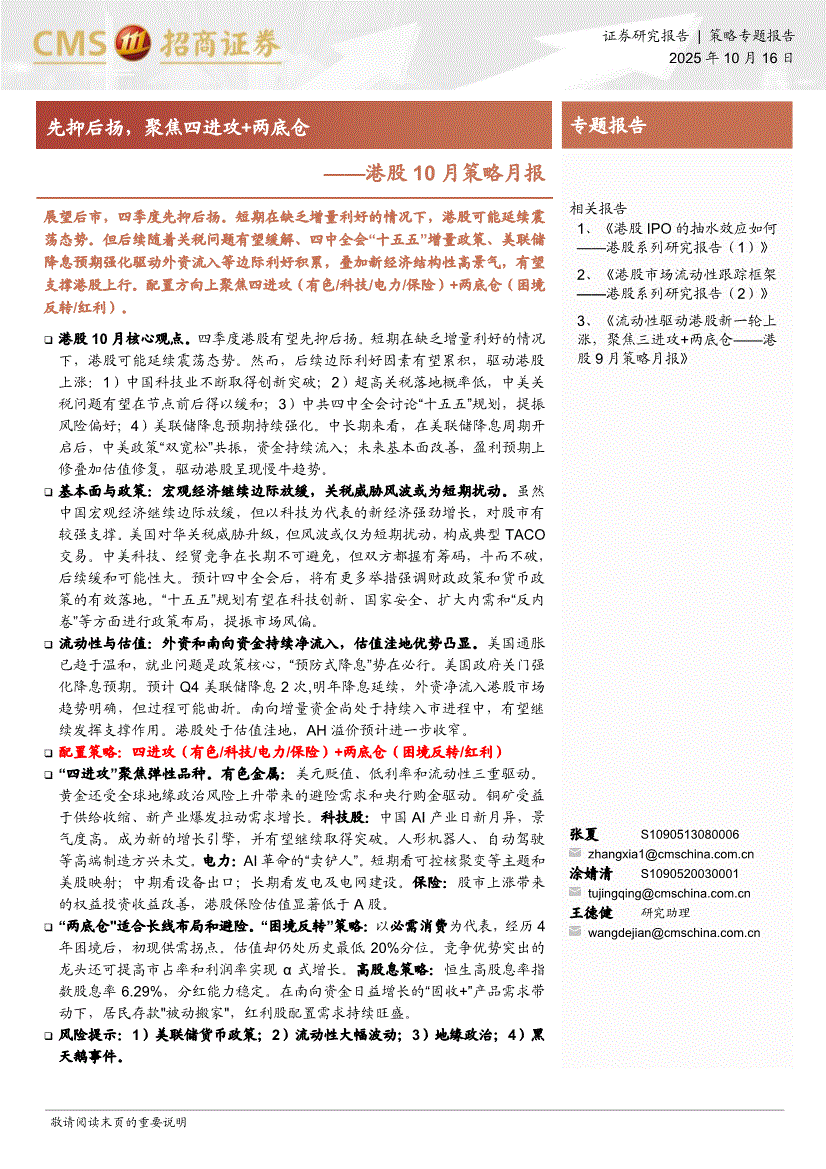 招商证券-港股10月策略月报:先抑后扬,聚焦四进攻+两底仓-251016