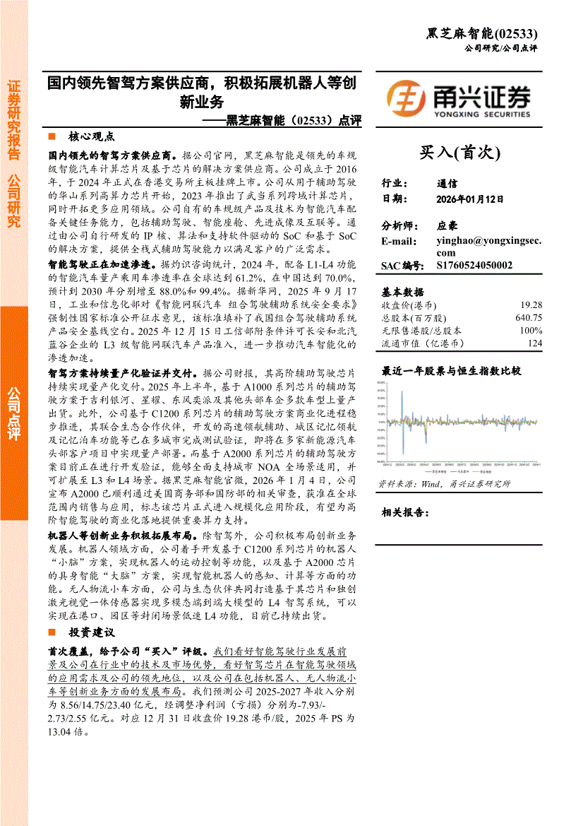 黑芝麻智能:甬兴证券-黑芝麻智能-2533.HK-点评:国内领先智驾方案供应商,积极拓展机器人等创新业务-260112