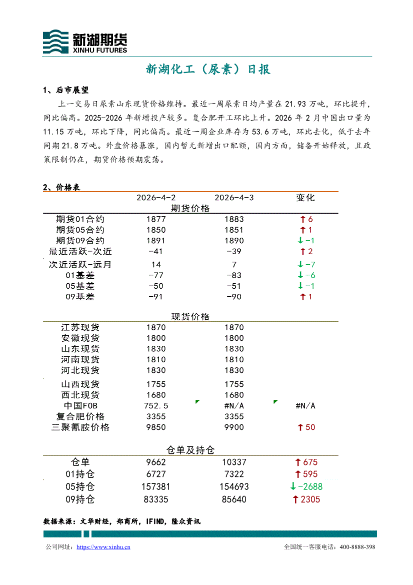 新湖期货-化工(尿素)日报-260409