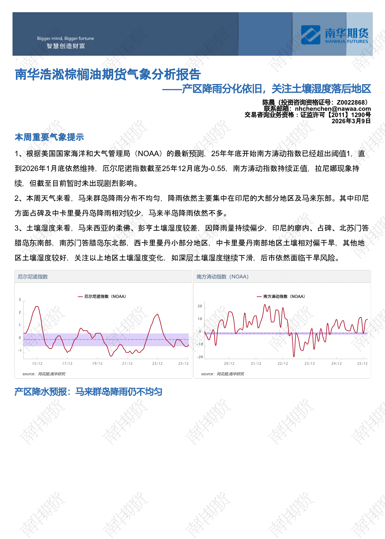 南华期货-浩淞棕榈油期货气象分析报告:产区降雨分化依旧,关注土壤湿度落后地区-260309