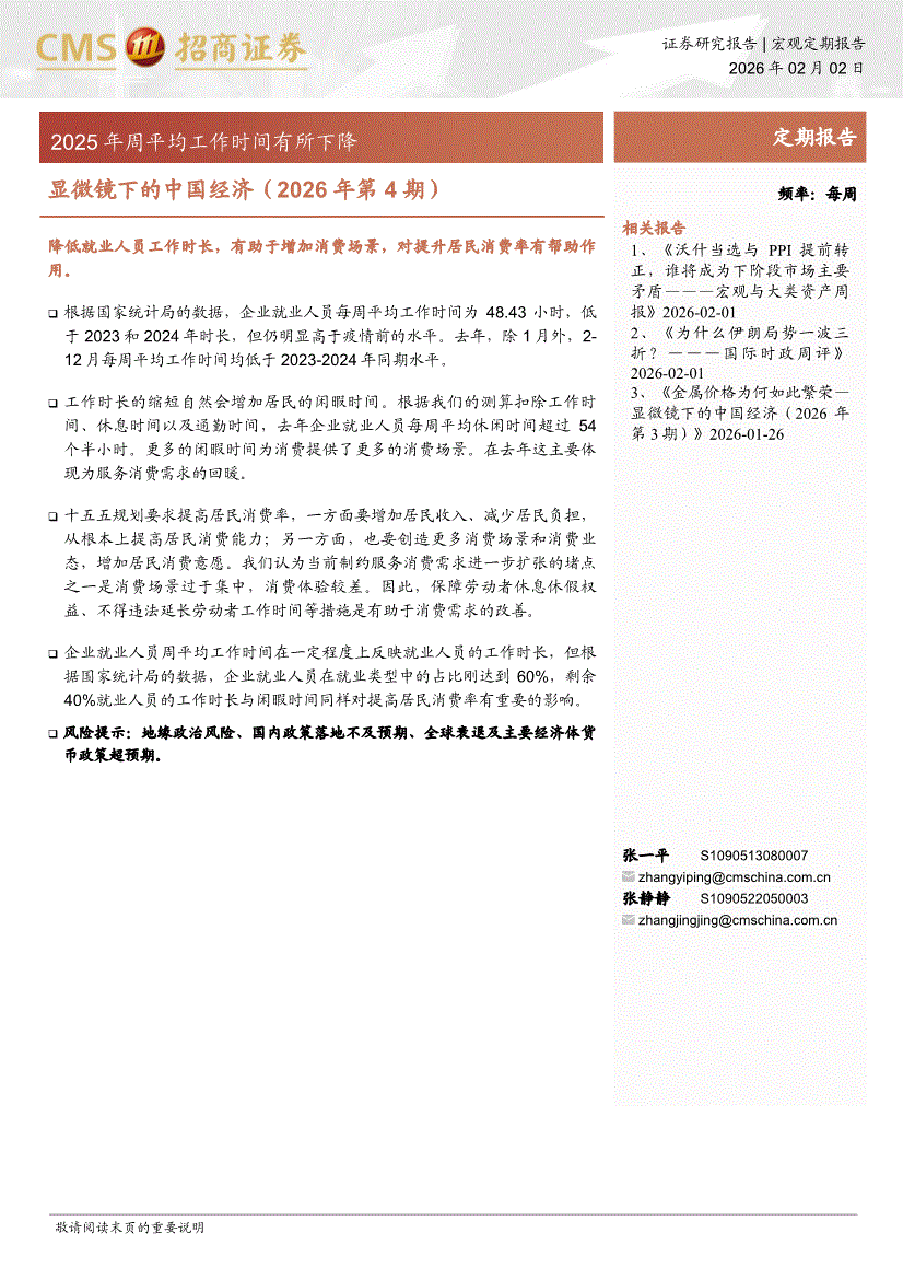 招商证券-显微镜下的中国经济(2026年第4期):2025年周平均工作时间有所下降-260202
