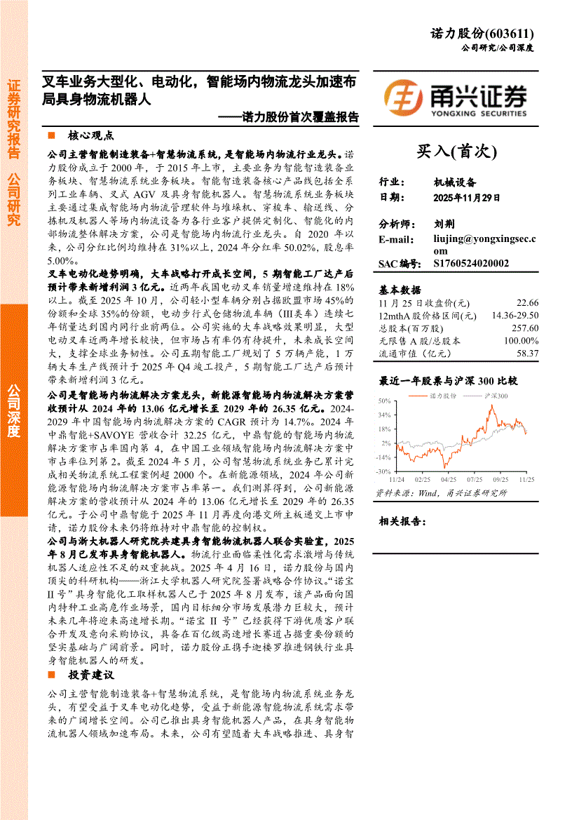 诺力股份:甬兴证券-诺力股份-603611-首次覆盖报告:叉车业务大型化、电动化,智能场内物流龙头加速布局具身物流机器人-251129