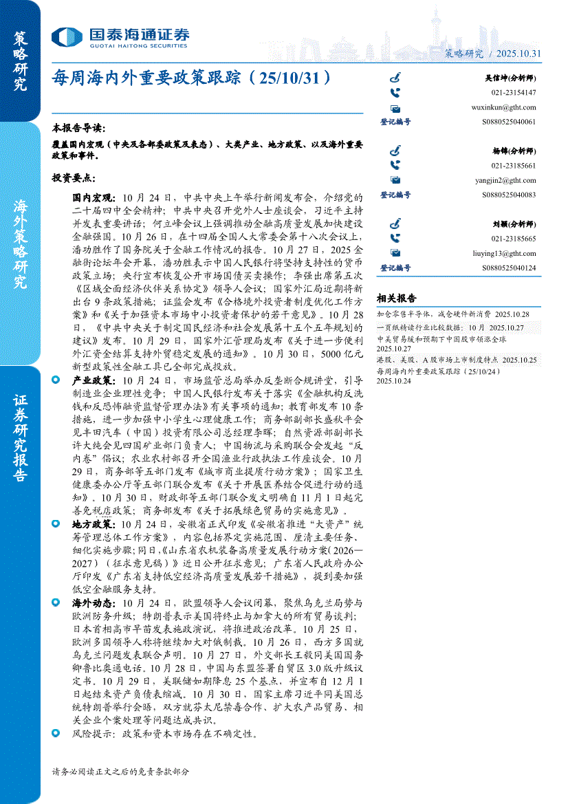 国泰海通证券-每周海内外重要政策跟踪-251031