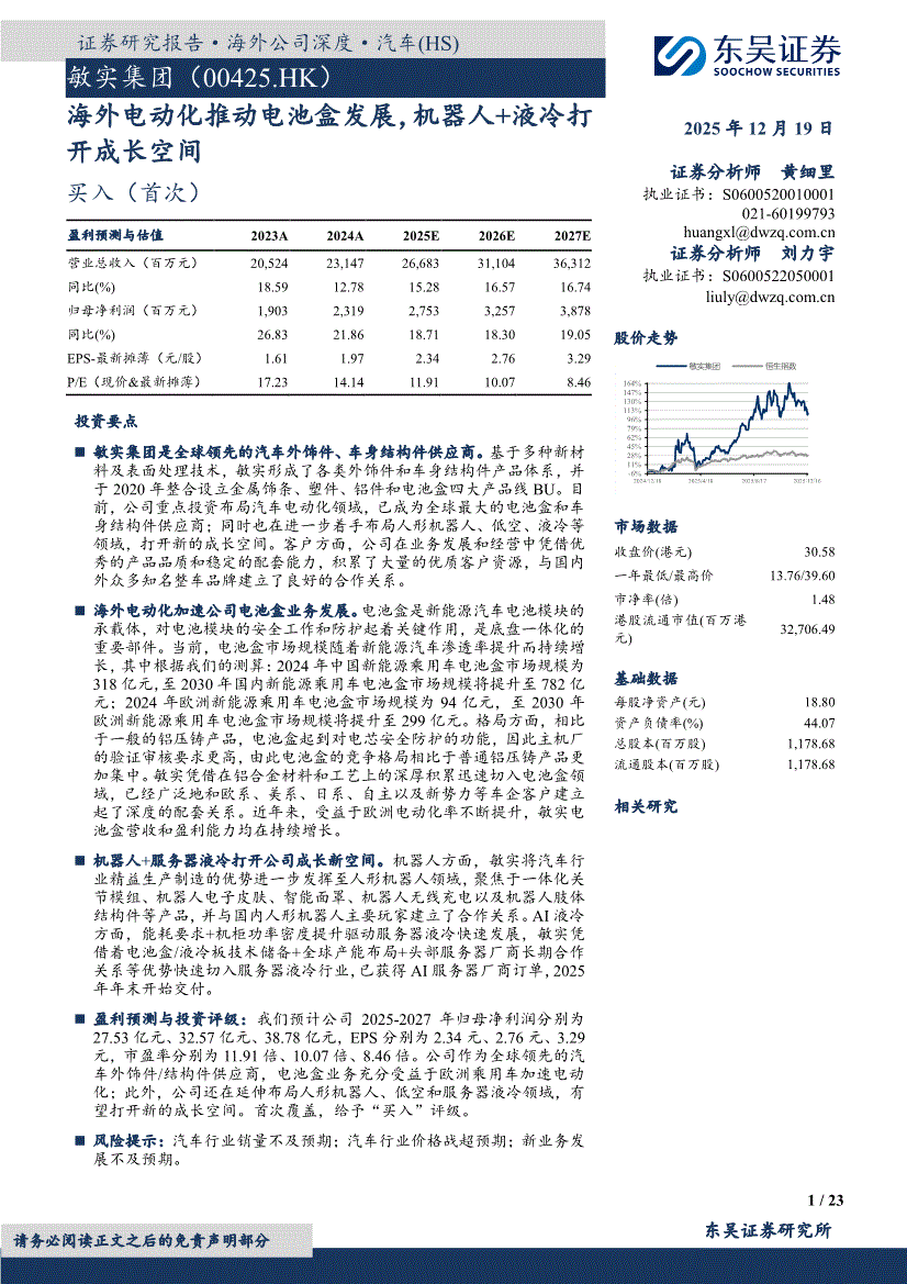敏实集团:东吴证券-敏实集团-0425.HK-海外电动化推动电池盒发展,机器人+液冷打开成长空间-251219