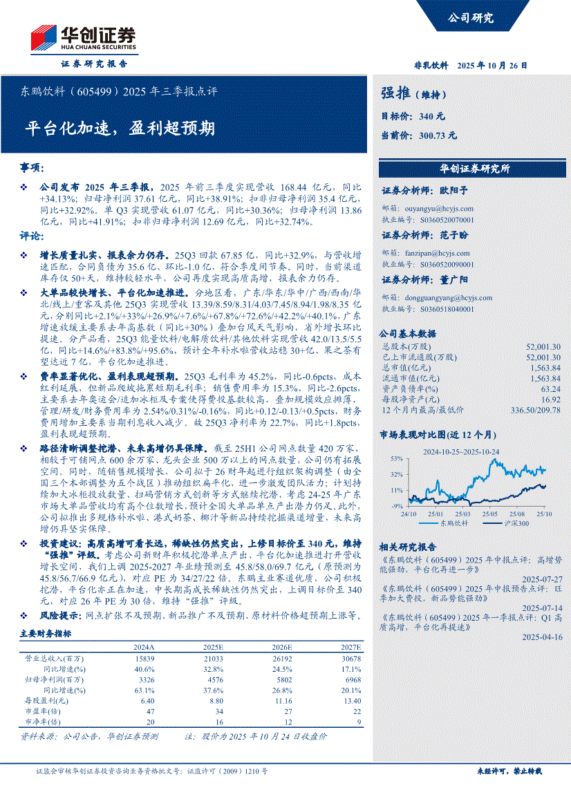 东鹏饮料:华创证券-东鹏饮料-605499-2025年三季报点评:平台化加速,盈利超预期-251026