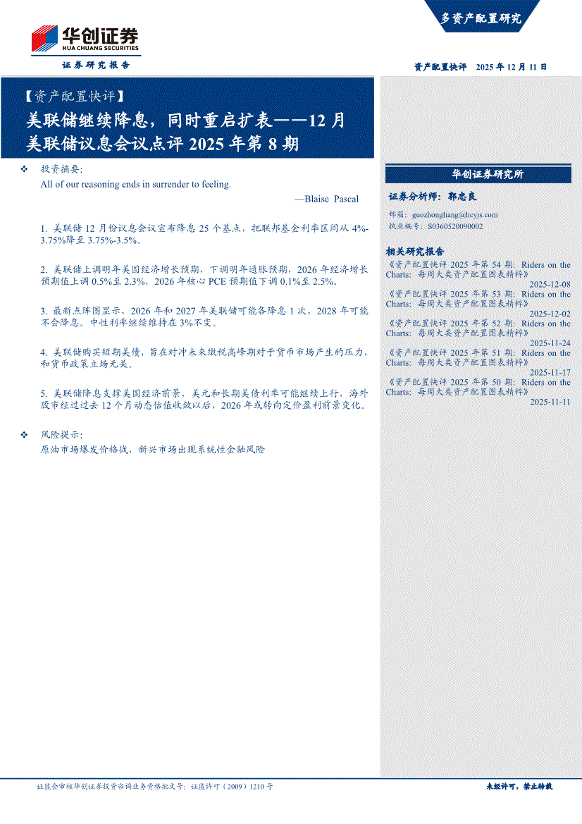 华创证券-【资产配置快评】12月美联储议息会议点评2025年第8期:美联储继续降息,同时重启扩表-251211