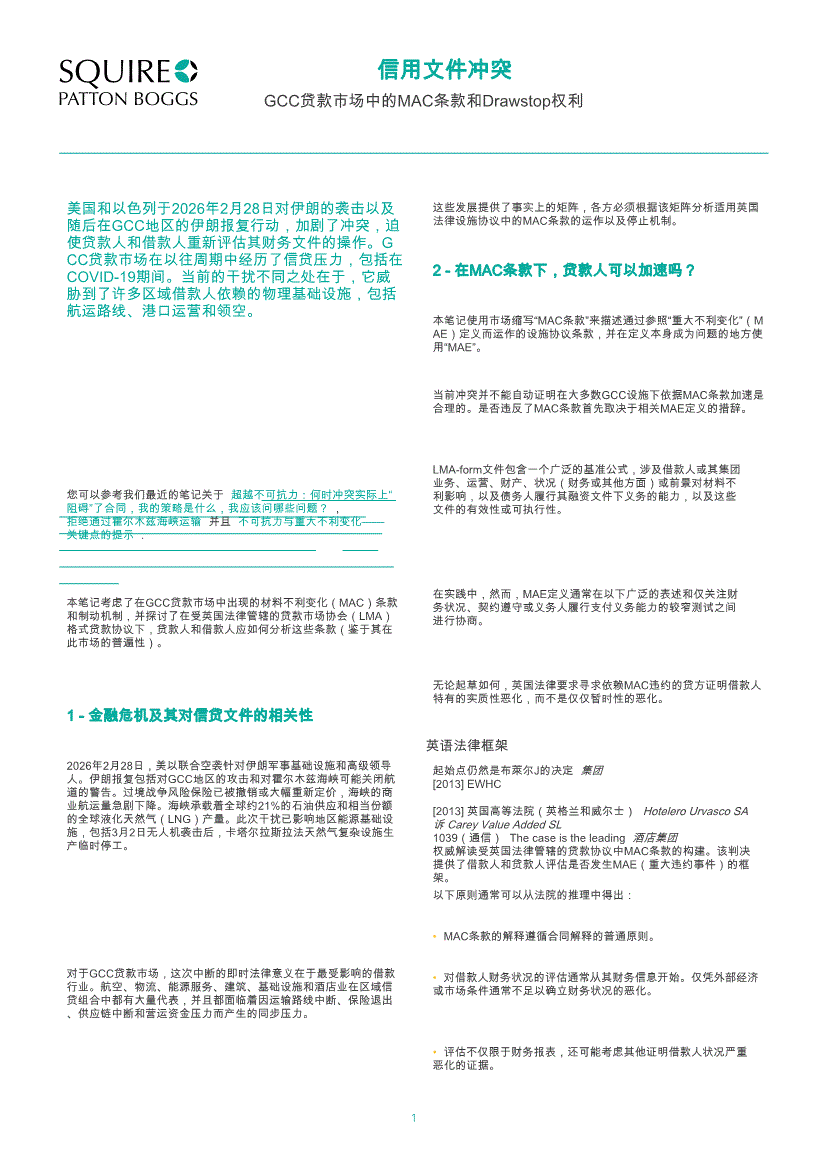 翰宇国际律师事务所-信用文件冲突:GCC贷款市场中的MAC条款和Drawstop权利(英译中)-260317