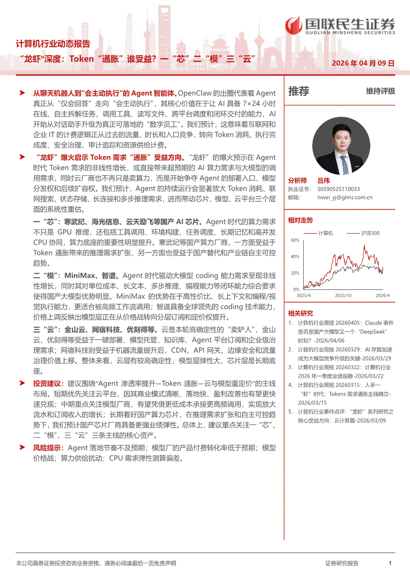 计算机行业:国联民生证券-计算机行业动态报告:“龙虾”深度,Token“通胀”谁受益?一“芯”二“模”三“云”-260409