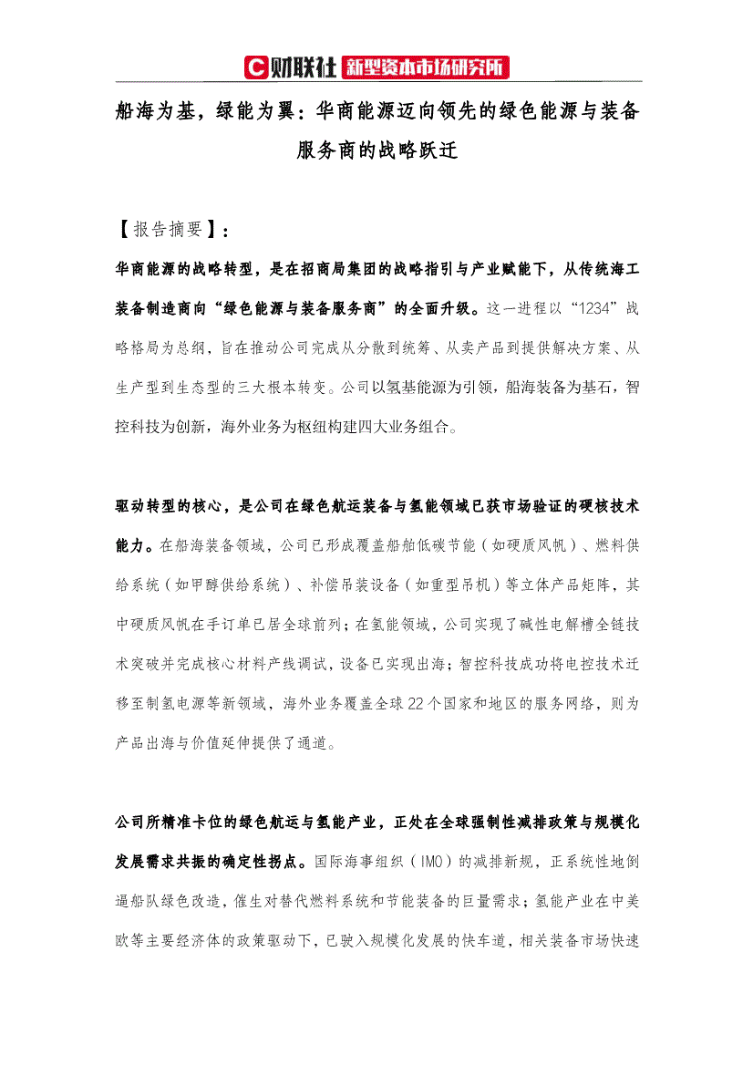 财联社-船海为基,绿能为翼:华商能源迈向领先的绿色能源与装备服务商的战略跃迁-260119