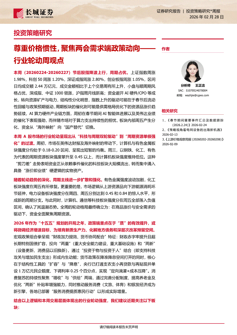 长城证券-行业轮动周观点:尊重价格惯性,聚焦两会需求端政策动向-260228