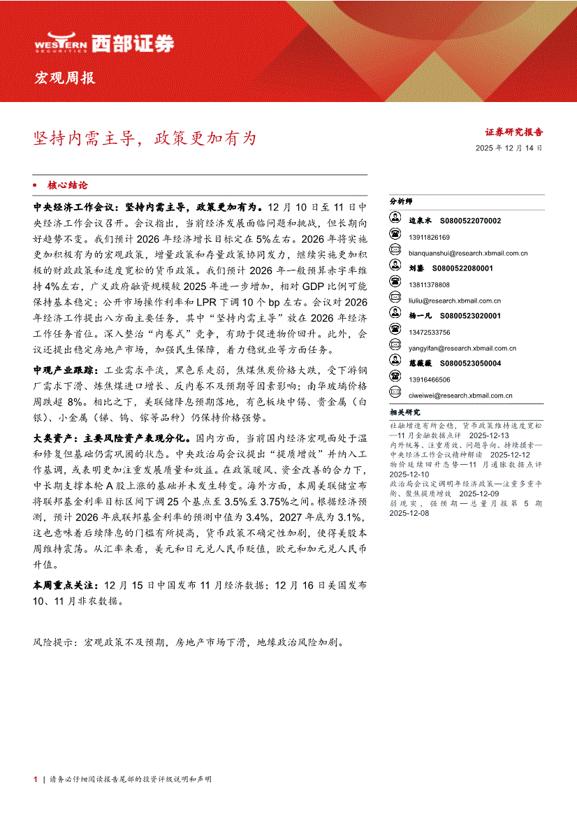 西部证券-宏观周报:坚持内需主导,政策更加有为-251214