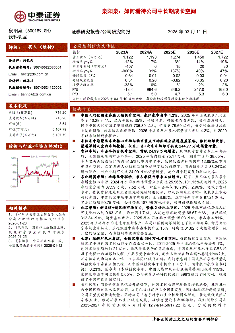泉阳泉:中泰证券-泉阳泉-600189-如何看待公司中长期成长空间-260311