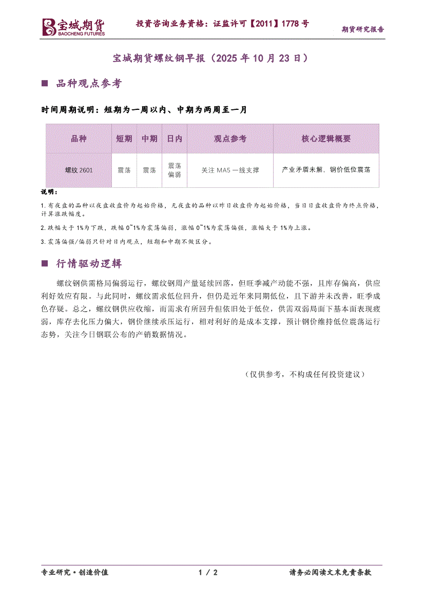 宝城期货-钢材&铁矿石日报:供需格局偏弱,钢矿低位震荡-251021