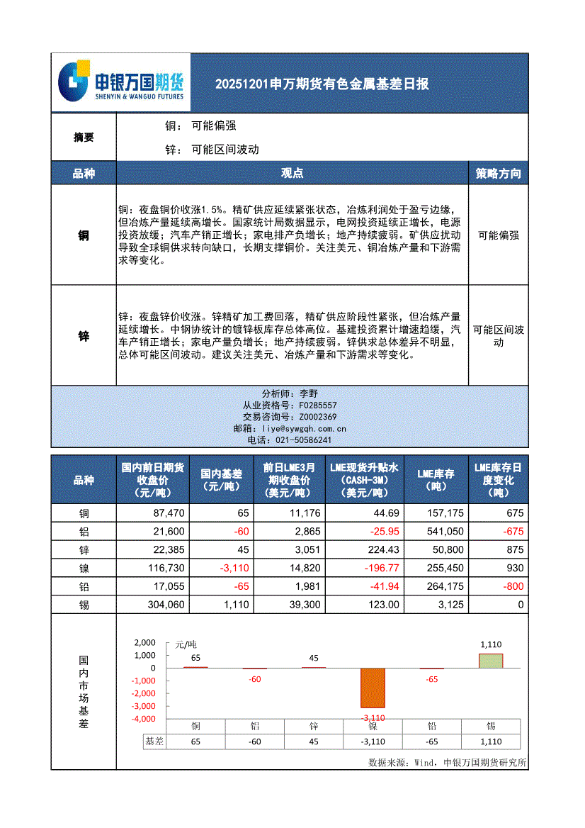 申银万国期货-有色金属基差日报-251201