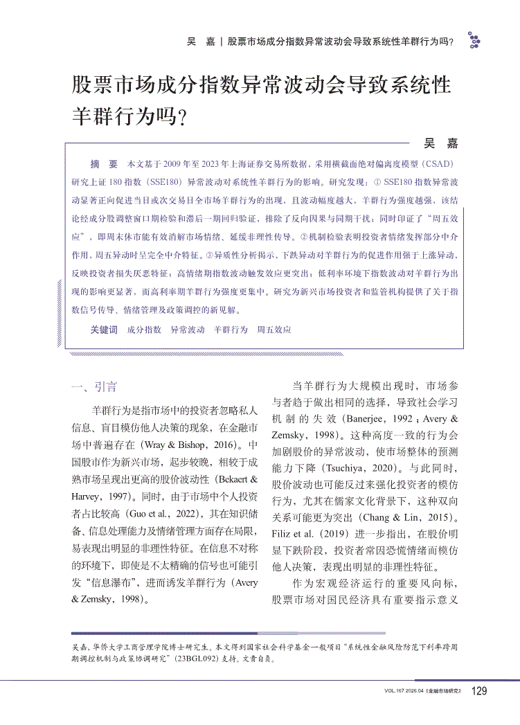 金融市场研究-股票市场成分指数异常波动会导致系统性羊群行为吗?-260420