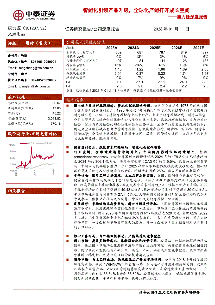 康力源:中泰证券-康力源-301287-深度报告:智能化引领产品升级,全球化产能打开成长空间-260111