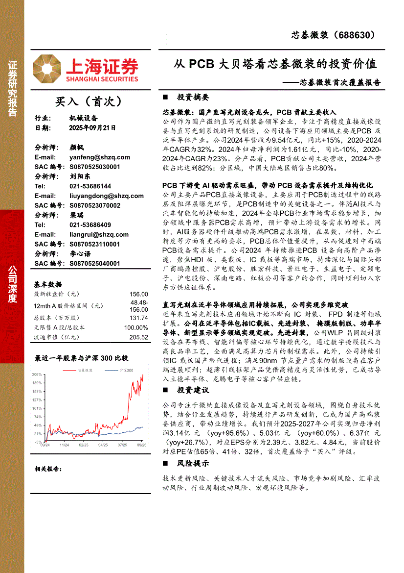 芯碁微装:上海证券-芯碁微装-688630-首次覆盖报告:从PCB大贝塔看芯碁微装的投资价值-250921