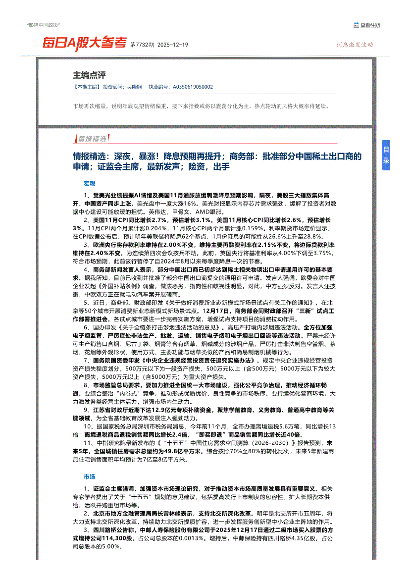 博览财经-每日A股大参考第7732期-251219