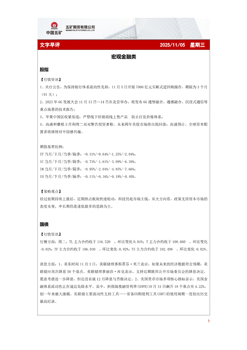 五矿期货-文字早评-251105