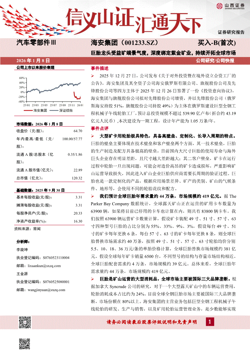 海安集团:山西证券-海安集团-001233-巨胎龙头受益矿端景气度,深度绑定紫金矿业,持续开拓全球市场-260108