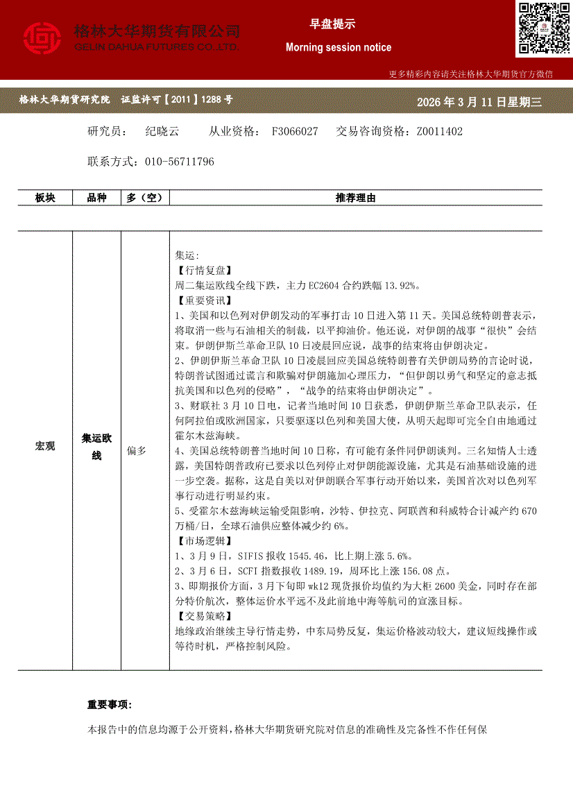 格林大华期货-中东局势市场影响系列解读(三)-260310