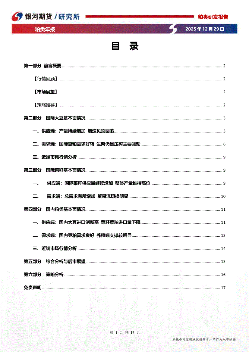 银河期货-粕类年报:国际市场供需仍偏宽松,价格整体承压运行-251229