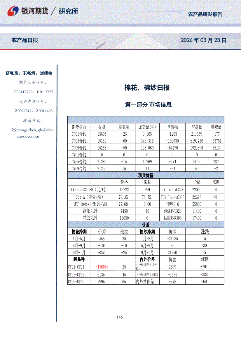 银河期货-棉花、棉纱日报-260323