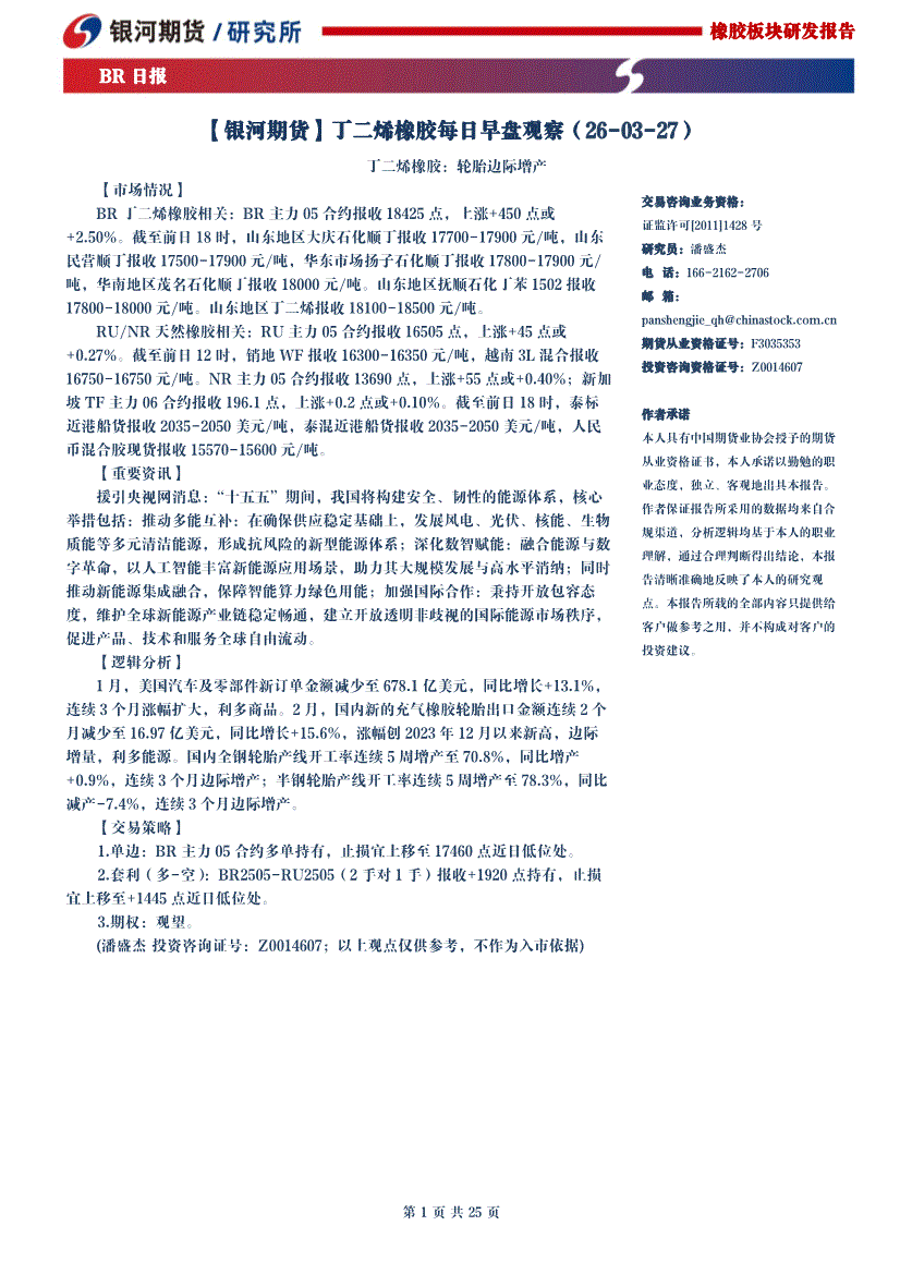 银河期货-丁二烯橡胶每日早盘观察-260325