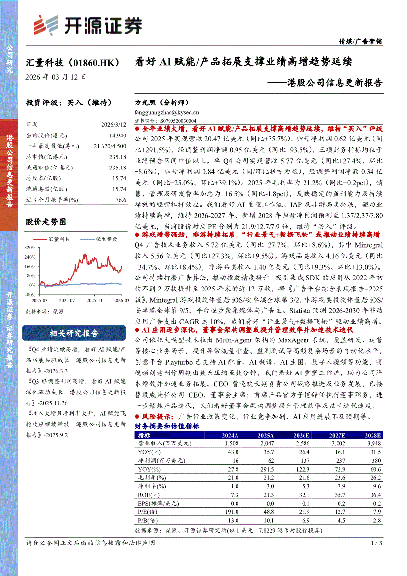 汇量科技:开源证券-汇量科技-1860.HK-港股公司信息更新报告:看好AI赋能/产品拓展支撑业绩高增趋势延续-260312