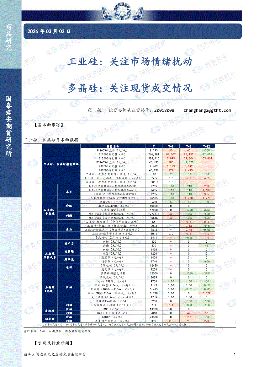 国泰君安期货-工业硅:关注市场情绪扰动,多晶硅,关注现货成交情况-260302