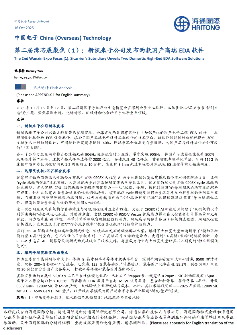 电子行业:海通国际-中国电子行业第二届湾芯展聚焦(1):新凯来子公司发布两款国产高端EDA软件-251016