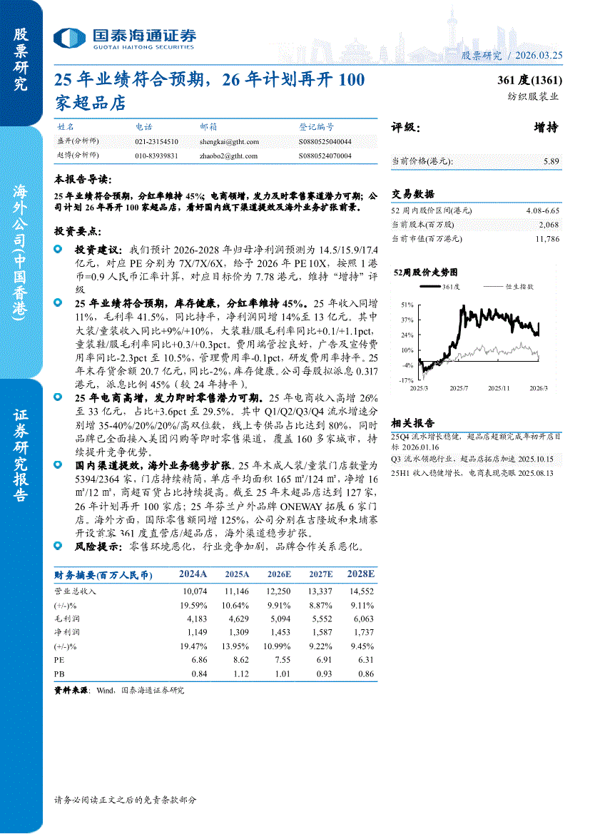 361度:国泰海通证券-361度-1361.HK-25年业绩符合预期,26年计划再开100家超品店-260325