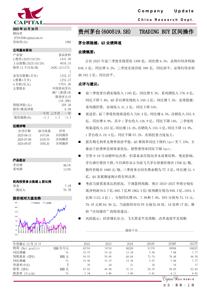贵州茅台:群益证券-贵州茅台-600519-茅台酒稳健,Q3业绩降速-251030