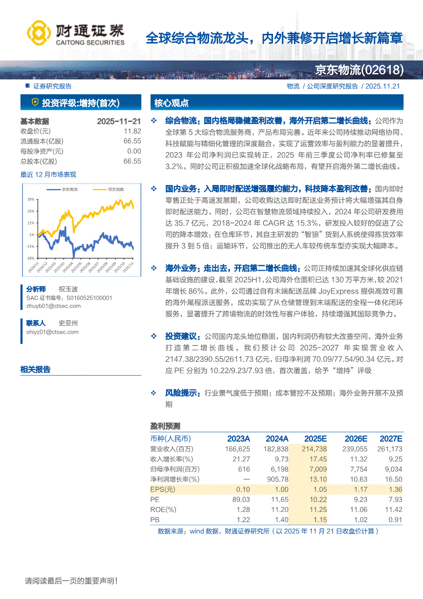 京东物流:财通证券-京东物流-2618.HK-全球综合物流龙头,内外兼修开启增长新篇章-251121