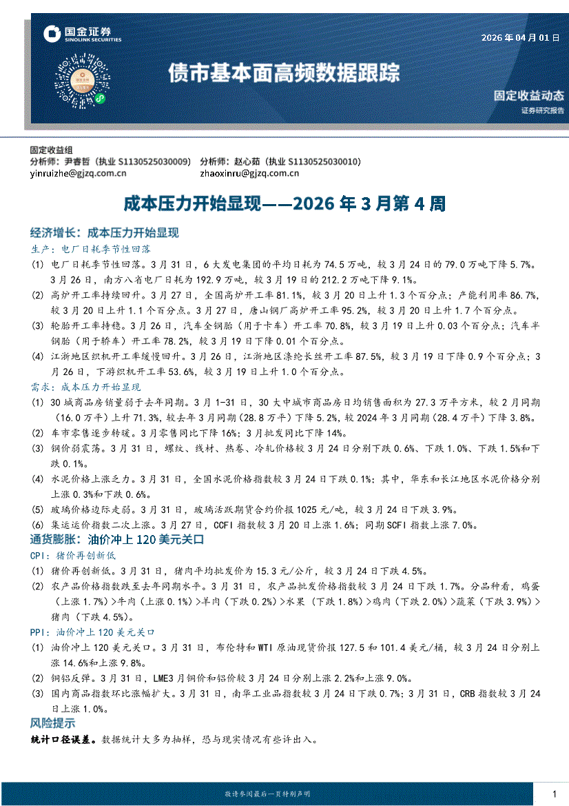 国金证券-债市基本面高频数据跟踪:成本压力开始显现——2026年3月第4周-260401