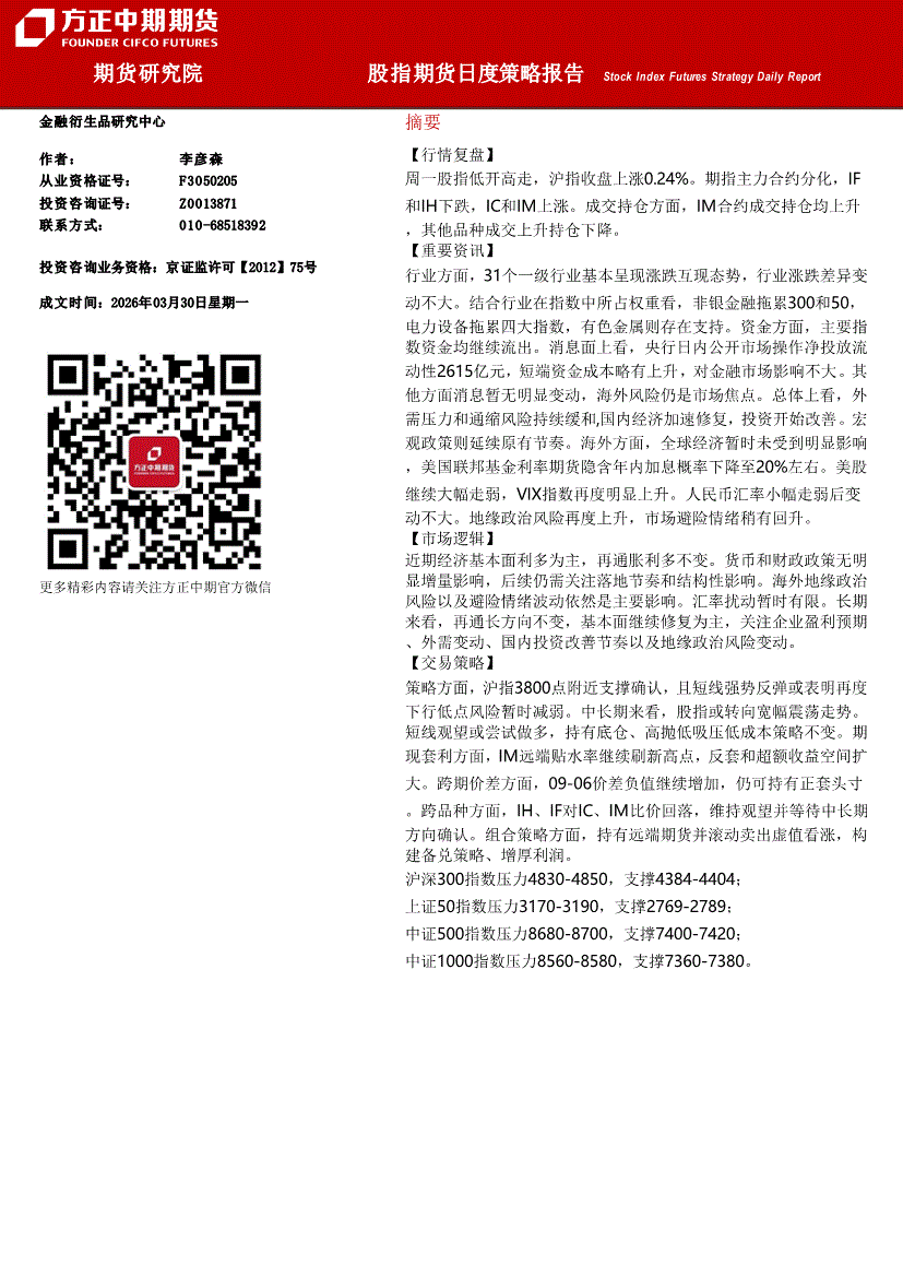 方正中期期货-股指期货日度策略报告-260330