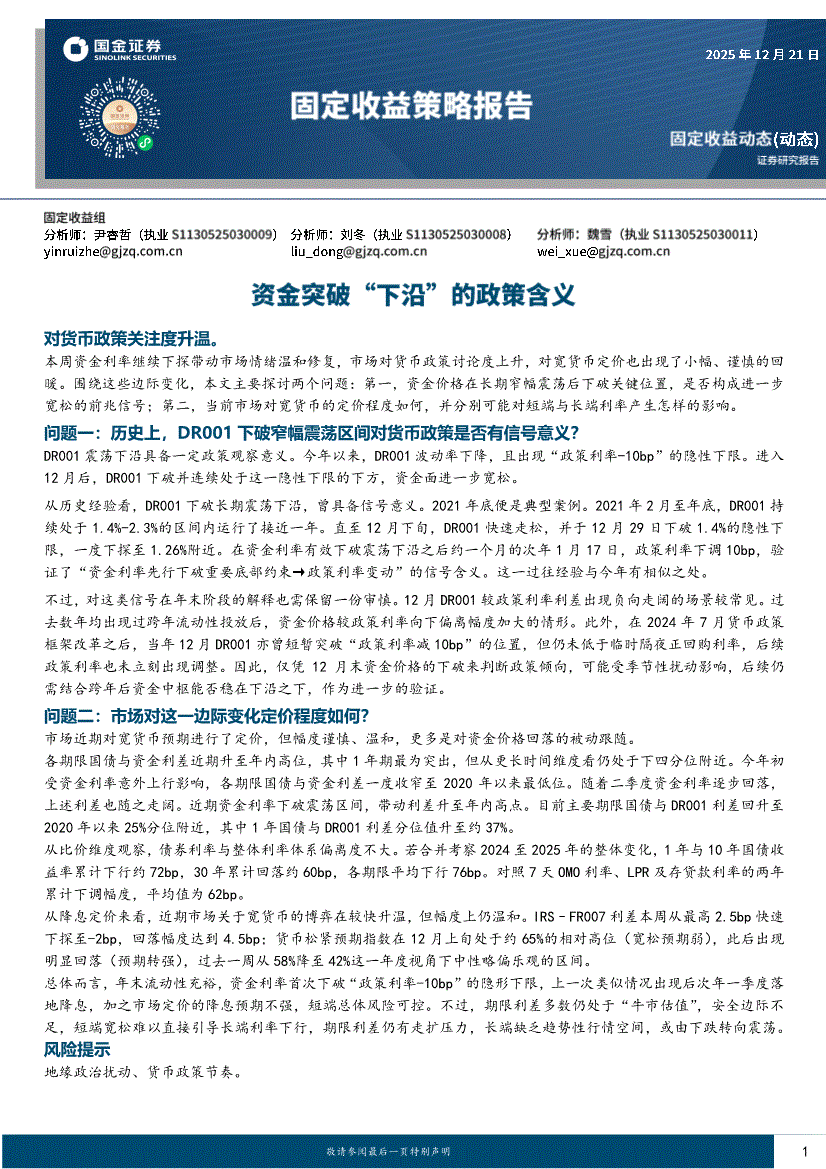 国金证券-固定收益策略报告:资金突破“下沿”的政策含义-251221