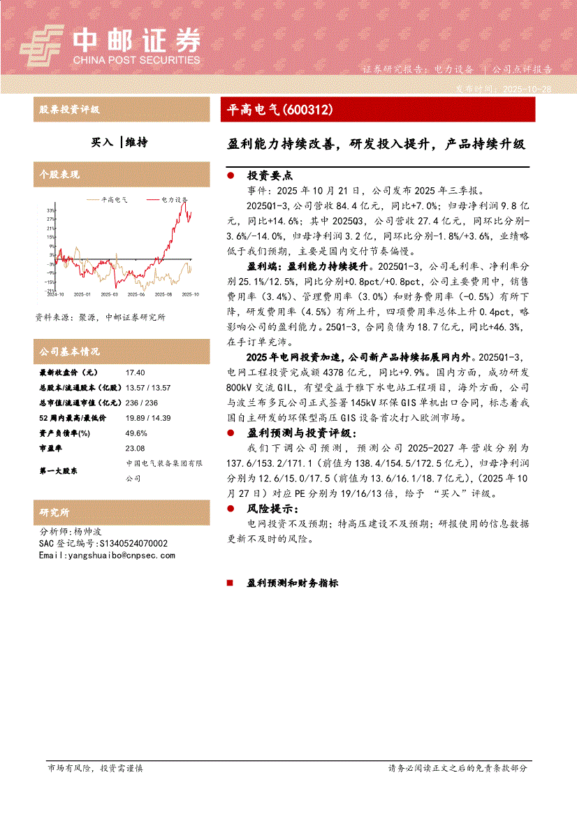平高电气:中邮证券-平高电气-600312-盈利能力持续改善,研发投入提升,产品持续升级-251028
