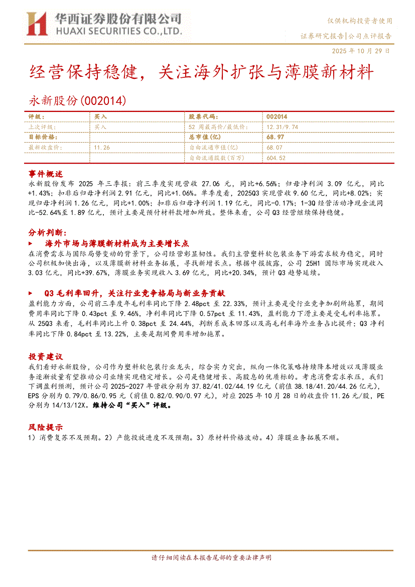永新股份:华西证券-永新股份-002014-经营保持稳健,关注海外扩张与薄膜新材料-251029