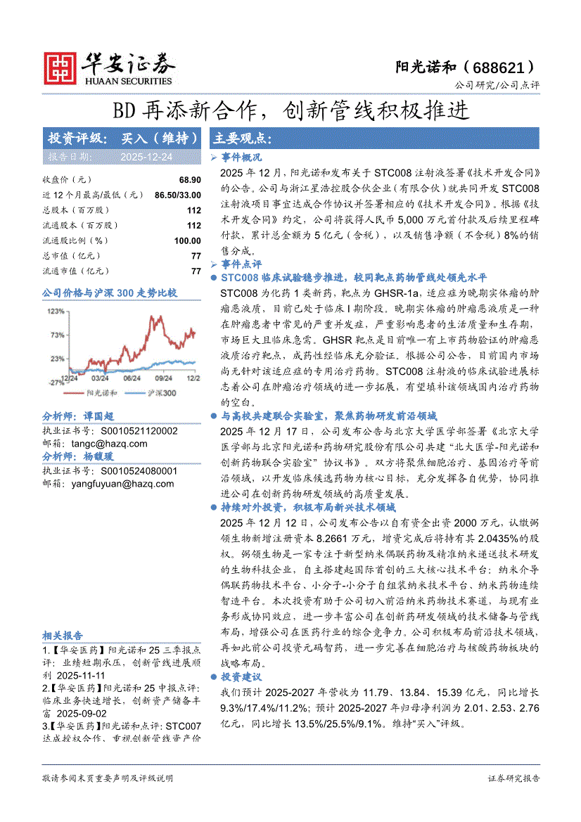 阳光诺和:华安证券-阳光诺和-688621-BD再添新合作,创新管线积极推进-251224